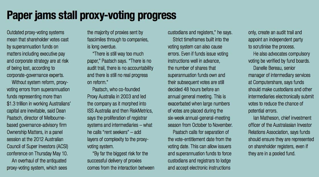 The governance spotlight was also shone on asset consultants. Executives from JANA Investment Advisers, Towers Watson, Frontier Investment Consulting and Mercer Investment Consulting addressed the major challenges in integrating ESG and active ownership policies.