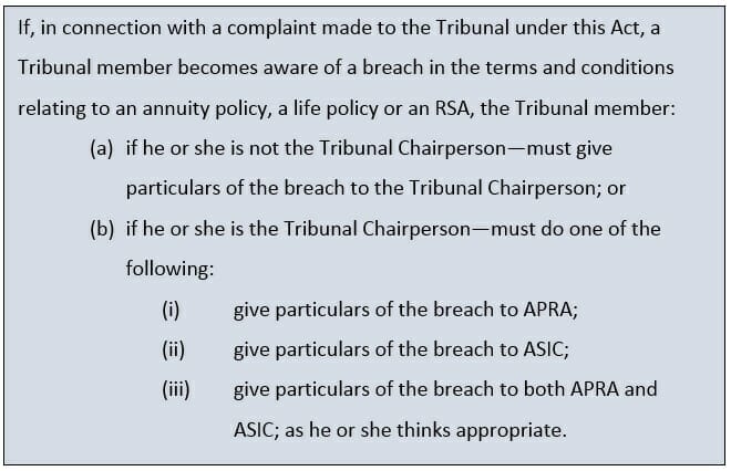Without a chairperson the STC is unable to inform APRA and ASIC of potential breaches to annuity policies, a life policies or an RSA.