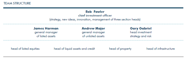 - A much more flexible approach to allocating across alternative growth assets. Fowler reasons that there needs to be flexibility in the deployment of capital in the unlisted space – if the team could not put money to work in infrastructure, then it could potentially be deployed in property. Likewise for private equity where the allocation could also go into shorter-term high-return positions anywhere across this new team.