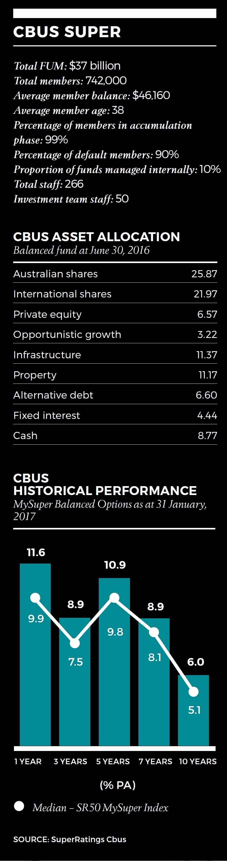 Cbus is holding about 10 per cent of total assets in cash.