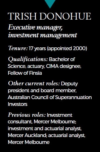 Donohue was the founding member of the Cbus investment team in 2000 and has led it ever since. A former Mercer consultant and actuarial analyst, she was originally hired by the fund to oversee its asset allocation strategy and external fund manager selection process.