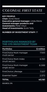 Tully’s 17-person internal team is responsible for the management of the FirstChoice multimanager, multi-index and Lifestage portfolios, as well as Commonwealth Bank Essential Super (a public offer Lifestage product marketed