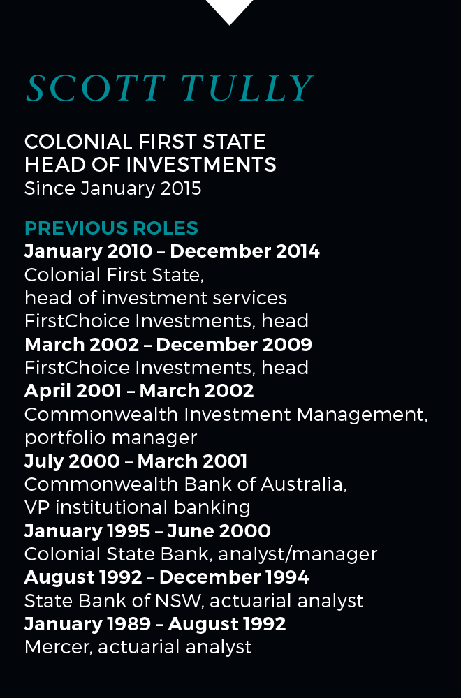 Colonial First State head of investments Scott Tully is a proponent of guiding disengaged default superannuation members into products with a risk profile appropriate to their stage in life. That belief informed the design of CFS’s MySuper product and is set to influence its approach to the incoming MyRetirement regime.