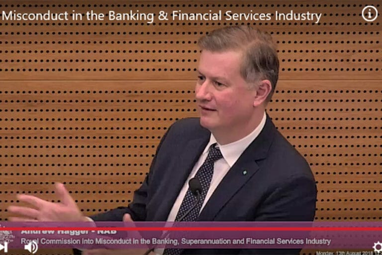 In an intense afternoon session opening week two of the commission’s focus on the superannuation industry, NAB chief customer officer Andrew Hagger was questioned about a conference call with chief executive Andrew Thorburn and chief operating officer Antony Cahill over the weekend of October 22, 2016, when they discussed what to tell the Australian Securities and Investments Commission.