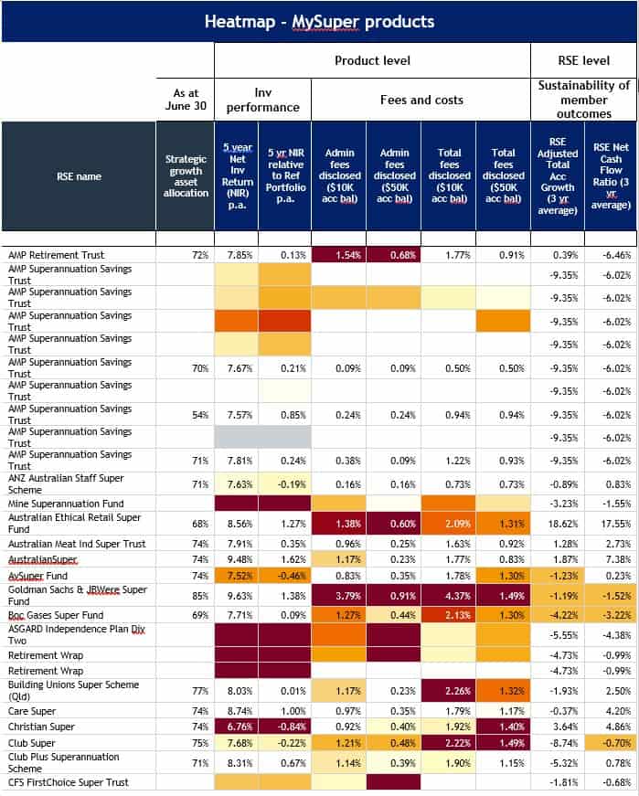 A mix of industry and retail super funds have been identified by APRA’s much-anticipated heatmaps as the worst performers over five years.