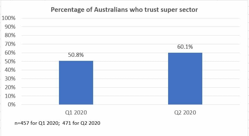 In the June quarter around 60 per cent of everyday Australians had at least mild trust in the super sector. When asked to rate their level of trust in super on a scale from one to ten, this group gave it a six or more. That’s significantly higher than the March quarter, when only half the respondents had at least mild trust in super.
