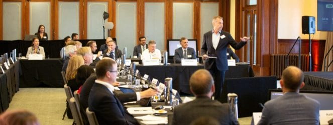 CSC has been building its thinking and capability in advance of the Retirement Income Covenant in its investment solutions team, Hill told the room of 60-plus people, which included representatives from the largest 13 funds, a handful of service providers, academics, regulators and policy makers at the UN-style meeting in Canberra in mid-June (pictured below).