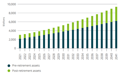 Projection of the mix between pre- and post-retirement assets