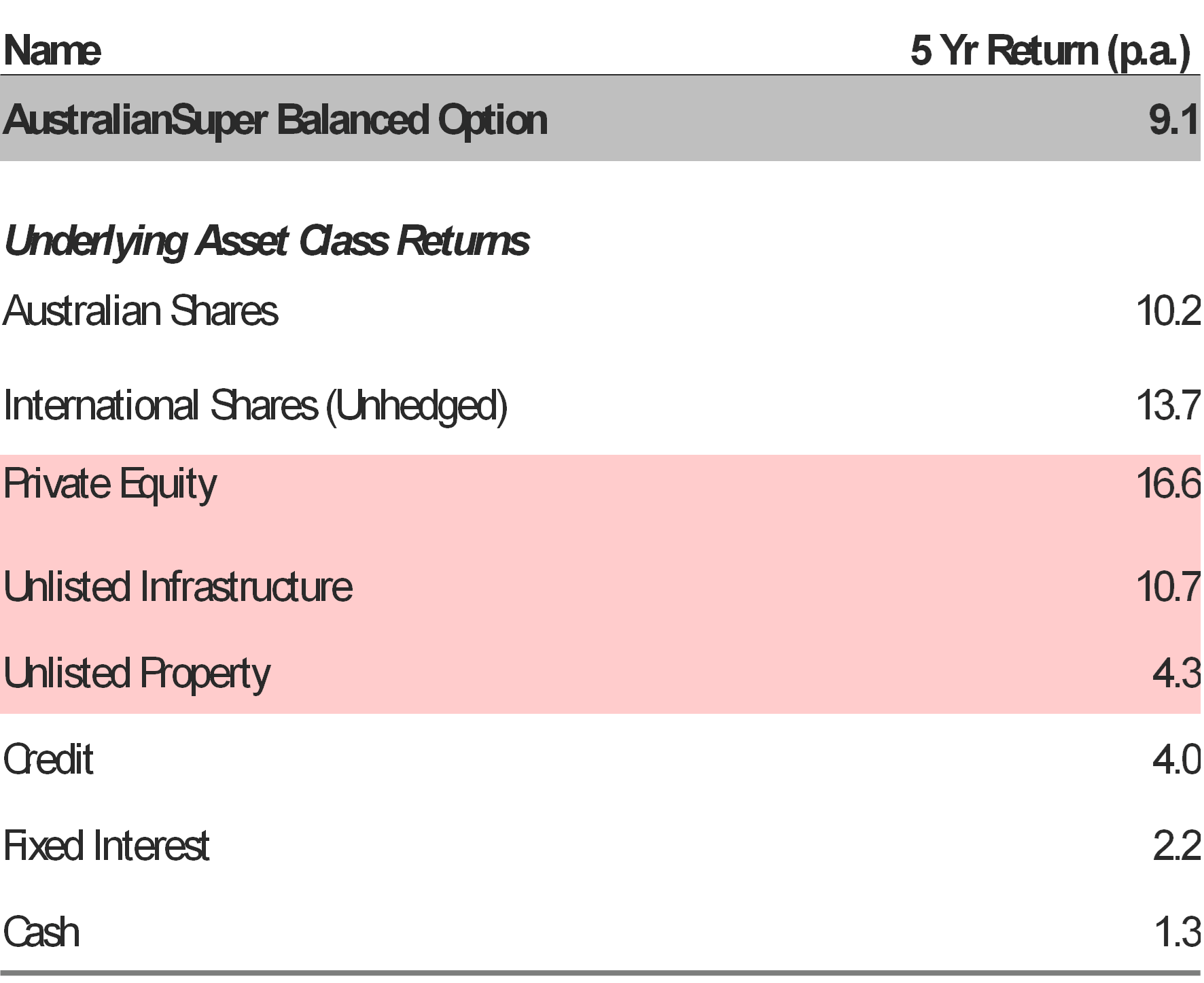 Annualised return contribution of AustralianSuper’s Balanced Option (five-year period at 31 March 2022)
