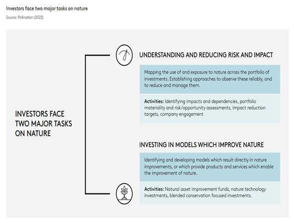 In its Tracking Global Trends in Nature Investment report, Pollination says the TNFD sets two main tasks for asset owners and other investors.