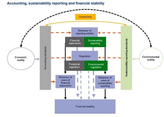 “Connectivity between accounting and sustainability reporting standards is of paramount importance, as users of financial information and sustainability reports may otherwise receive contradicting information on the same reality,” according to the ESRB.