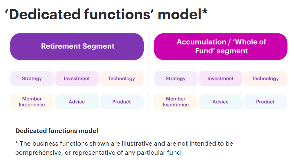 “The business areas and strategic objectives that previously formed the Retirement Division still remain and the repoint of functions delivers greater efficiencies in the way we service members,” the spokesperson said.